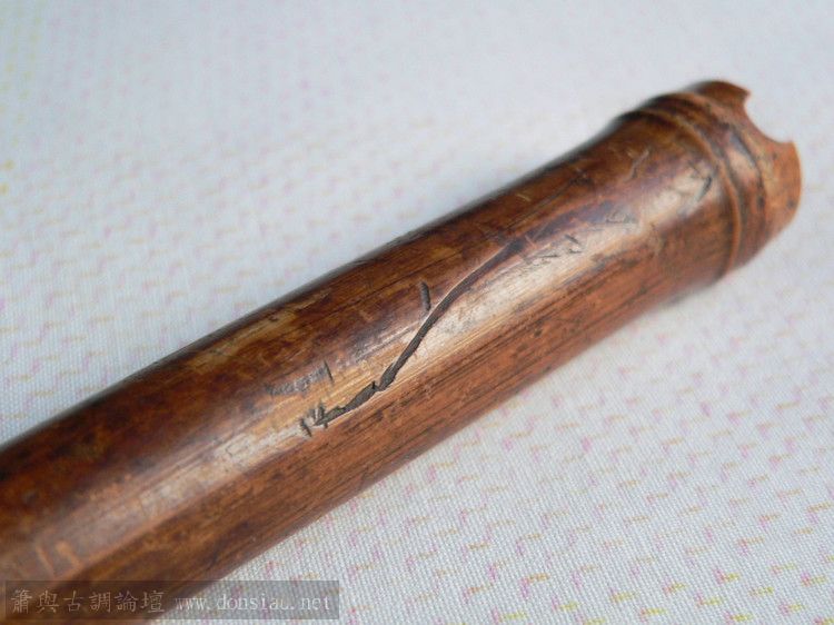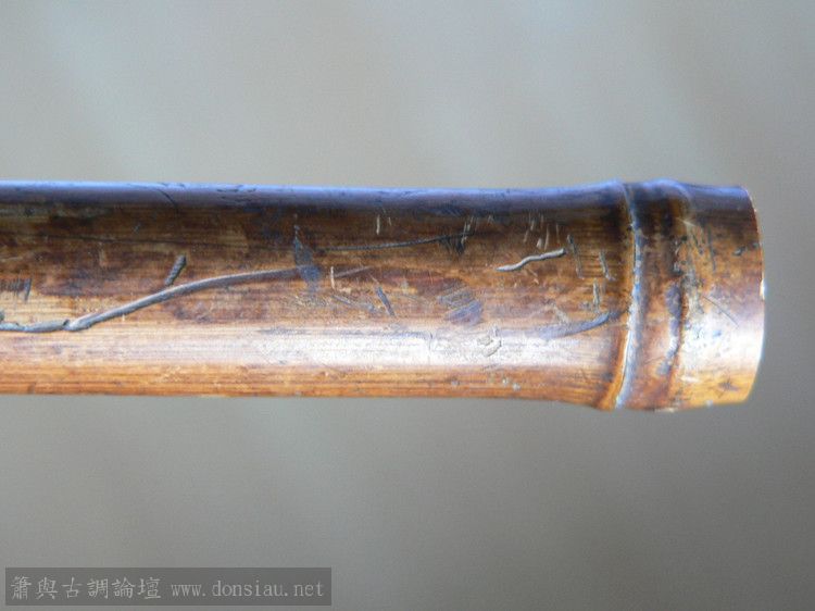 国庆节老屋搬家,发现一根细细的竹杆,大概是晾衣服用的之类, 估计有20多年历史,表面的伤痕看起来与玉屏的雕琢有异曲同工之妙,且已形成非常完美的包浆,色泽老成,锯下能用的一段带回来,上端口内径1.2CM,尾端口内径1.1CM,全长66CM,现将照片发上来,与大家分享。