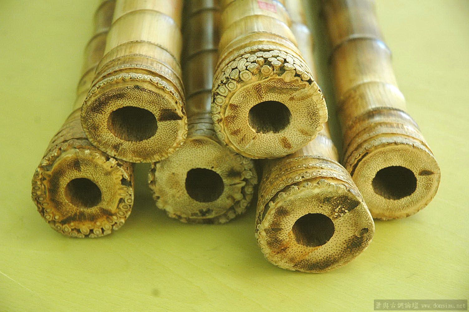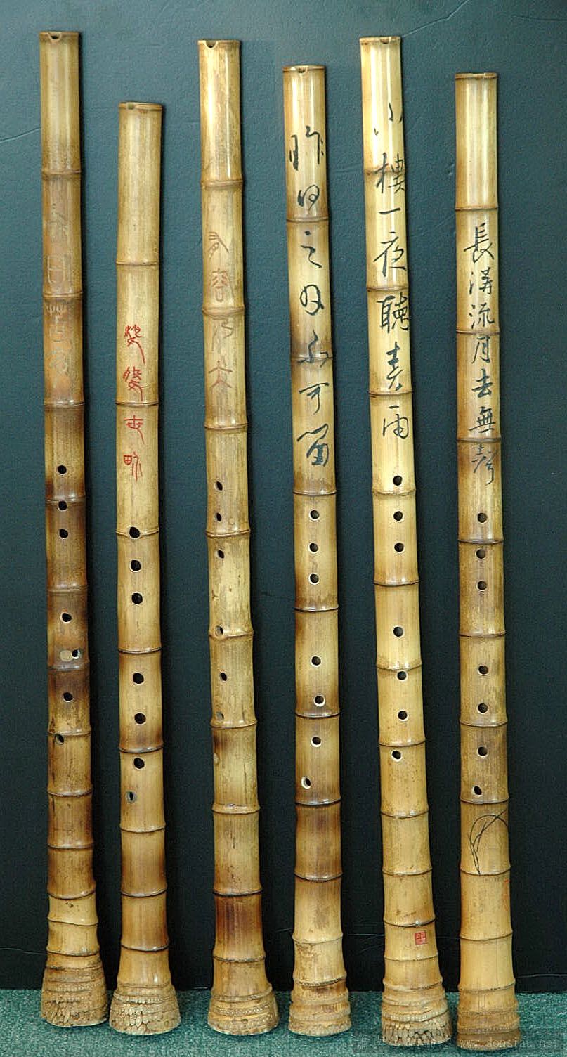 上图6根洞箫由左至右是按制作时间先后来排序,左为最早,右为最近期。
