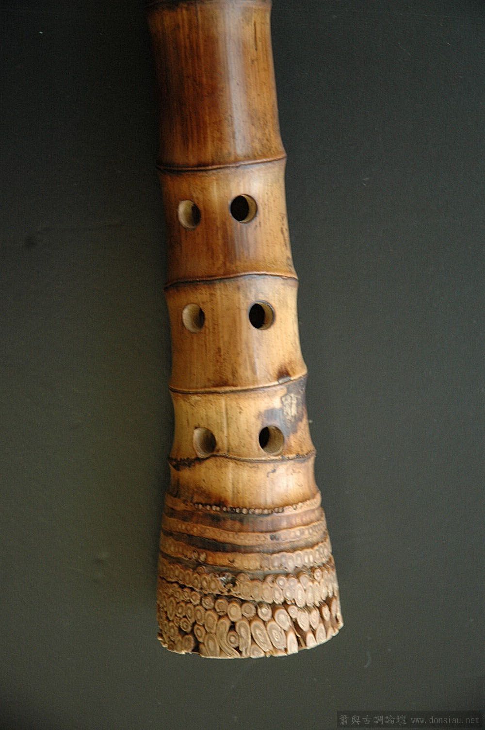 此箫的最大遗憾是本身有点歪斜,令我制作时错误判断,最后吹口和指孔不是在一直线上,做成难以解救的缺陷。。。