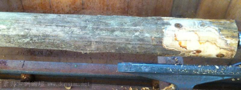中心有小洞,木質堅硬無比,車成粗胚,猶見蟲雕隱其中,自然之美!