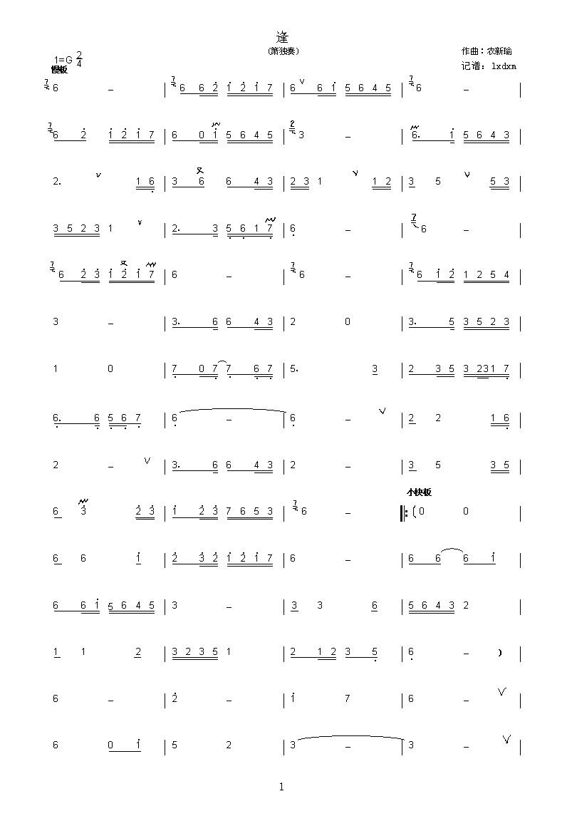 圖片附件: 《逢》谱1.jpg (2007-3-22 23:01, 59.36 K)