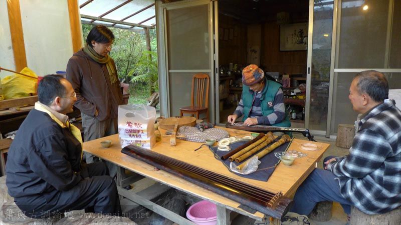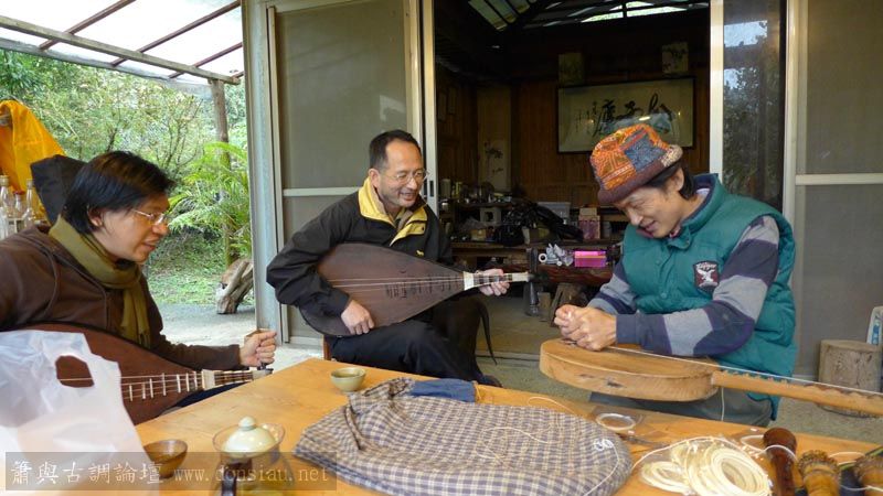 昨天下午周先生與兩位琴友一起到山,這回帶了22種不同規格的絲絃