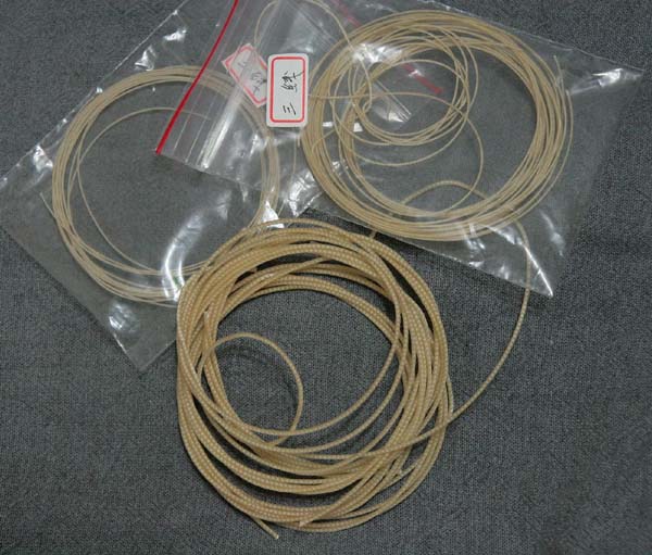 最近老婆勤練琵琶,三條甲線陸續斷了,再購買了各種南琶用絲絃,這回買的日本絲絃與古琴用類似,一樣是黃色,其耐用度與穩定度都高古琴絲絃很多。我想這樣的絲絃若用在古琴也該很理想。