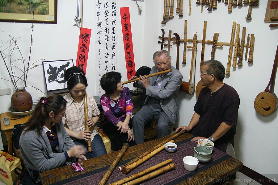 來到文松的工作室,兩位老師對於各種樂器都相當興趣,於是開始試簫、試笛...