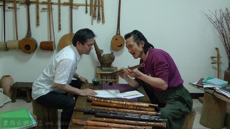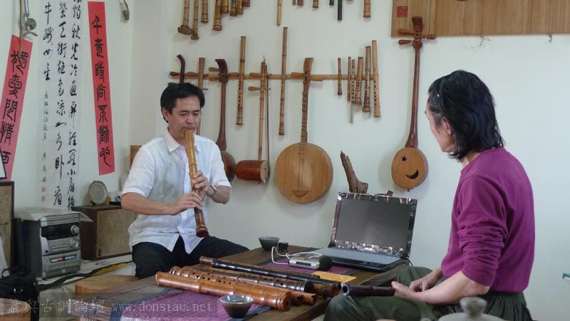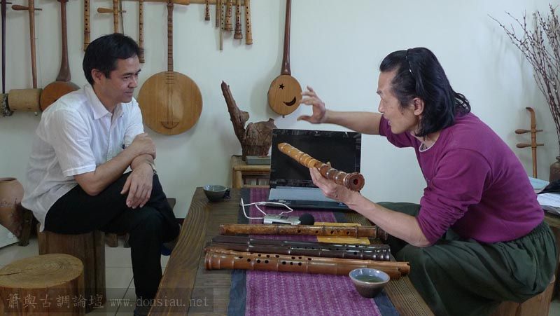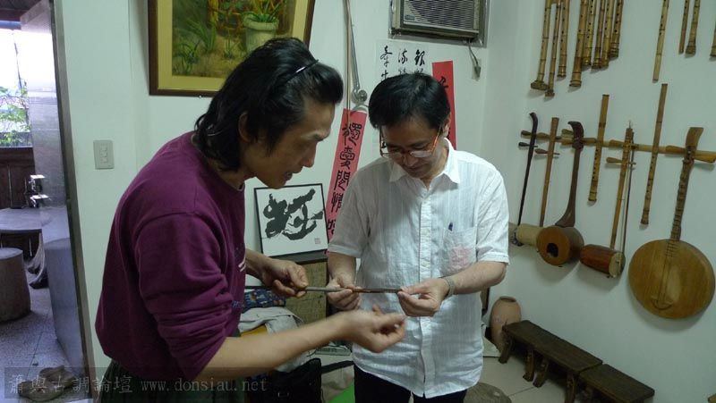 愉快的音樂交流,文松也分享腐餘杉芯新作的尺八及F調簫,