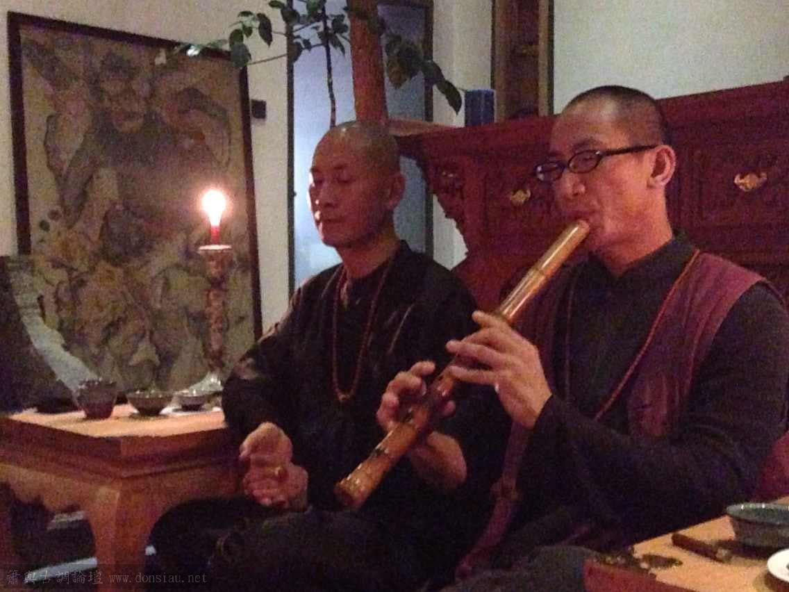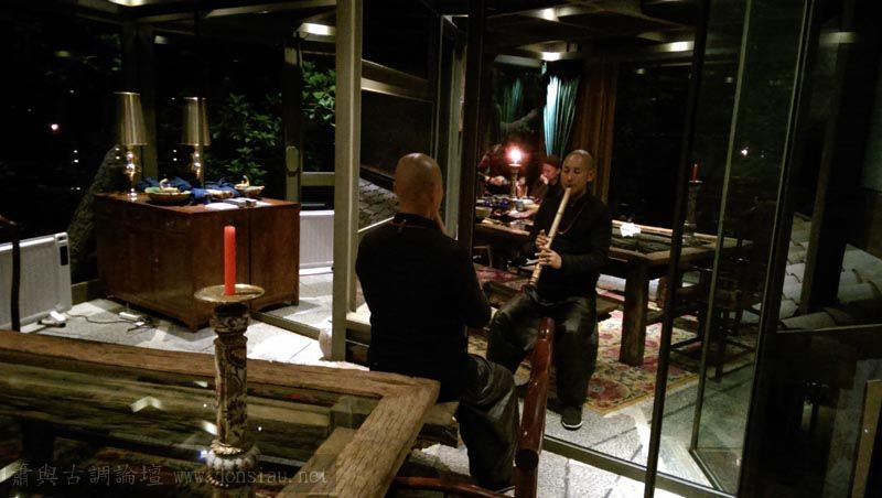 每天禪修後的晚間分組讓有興趣的學員學簫,由岳強先生拍攝教學紀錄