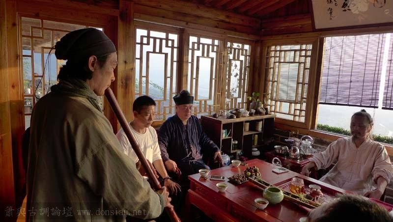 首晚在西湖畔的綺嘉心養生館與龍井草堂主人等杭州藝文人士雅聚,與朱老師一起分享簫聲,