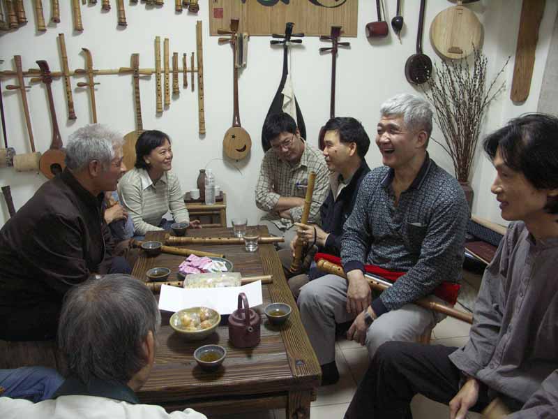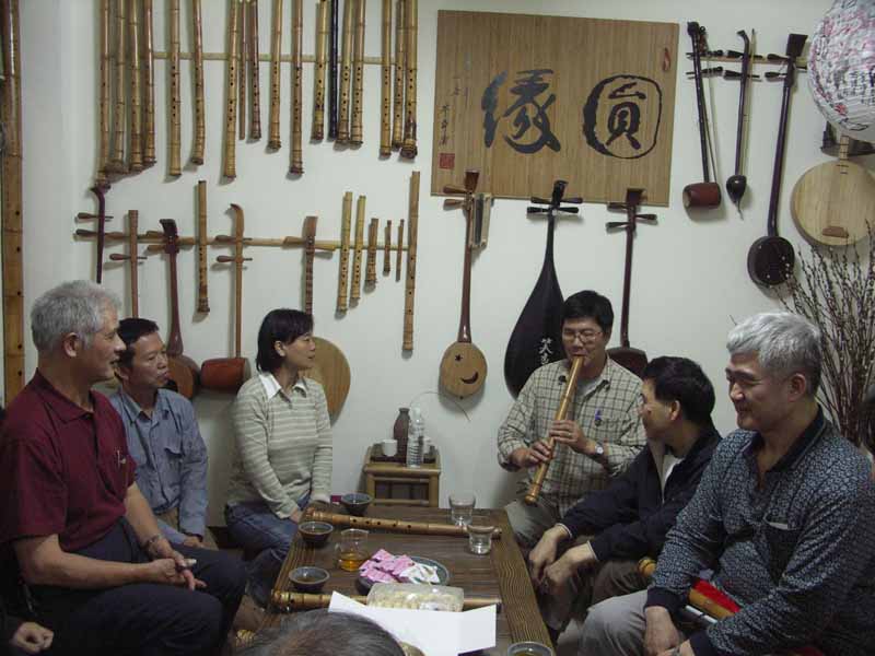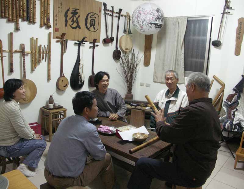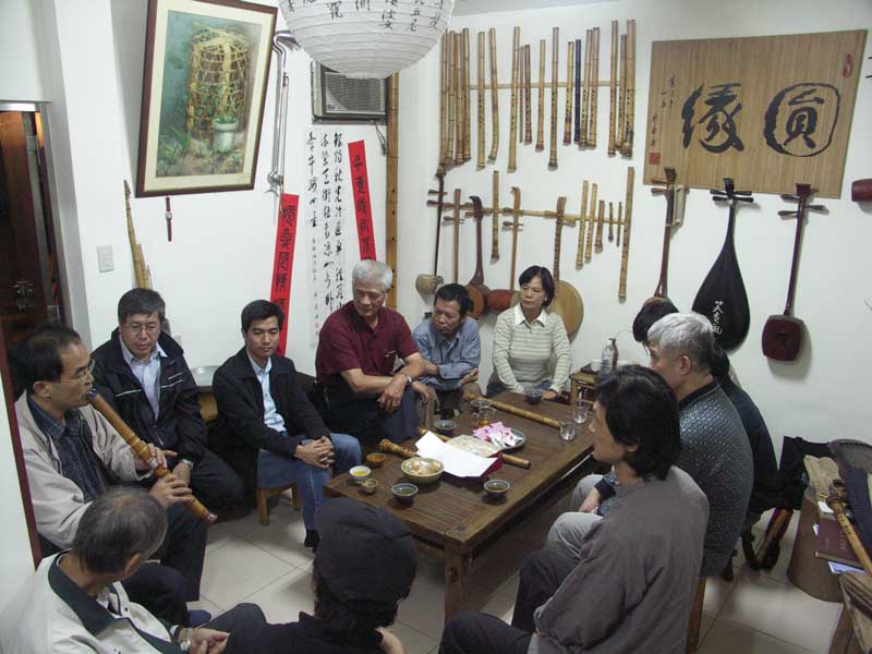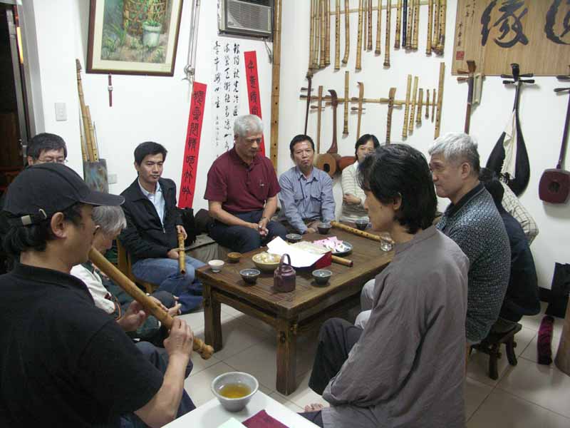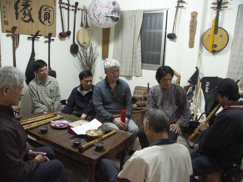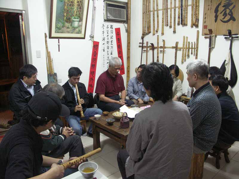 新竹的簫友余老師、鄭先生、林先生、陳小姐最先抵達,閒聊後討論自然持簫的姿勢。