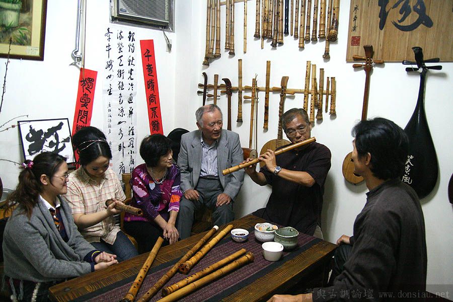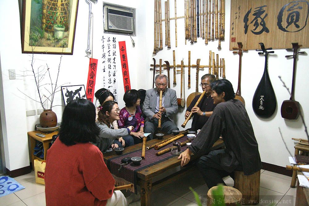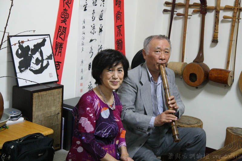 日本尺八家宮田耕八朗老師及箏家渡边治子老師來台參加劉潁蓉【對穎成三竹-劉穎蓉與笛、簫、尺八的對話II】在國家演奏聽的演出,演出後陳中申老師邀請於無名子清粥小菜館聚會交流,相談甚歡,兩位老師對於簫與尺八差異很有興趣,對於音階、音色差異等交流了相當時間,興致極高,最後不顧夜深,再訪古調工作室,於是頂樓的工作室夜深中簫聲再起...