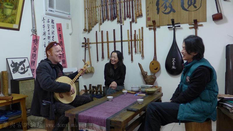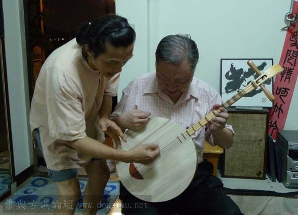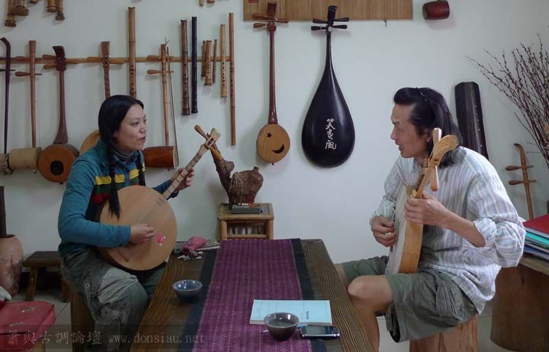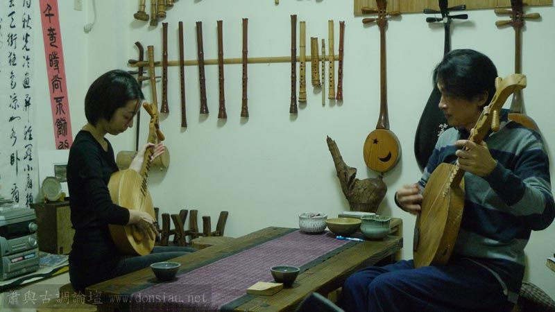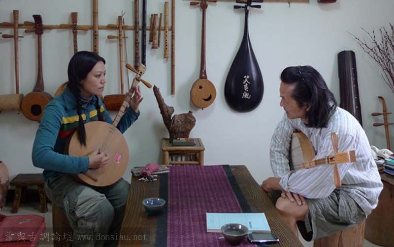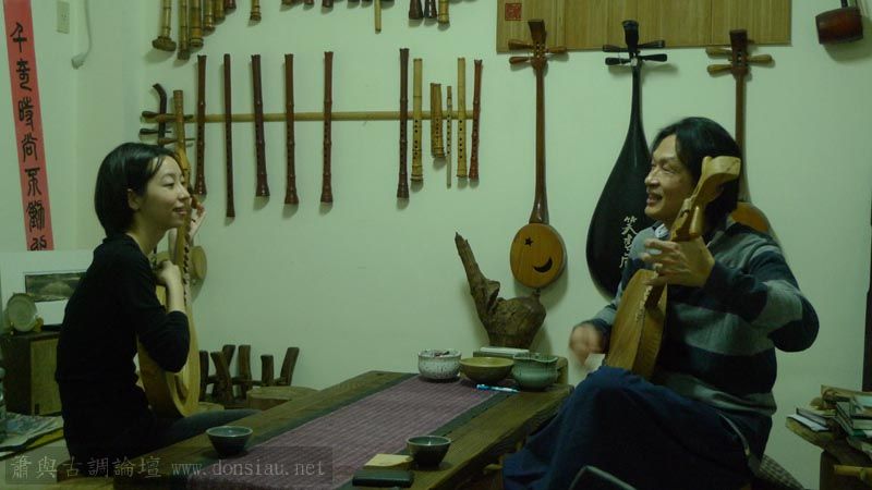 古琴家蕭東全先生在學生張小姐的引領下來學月琴彈唱,
