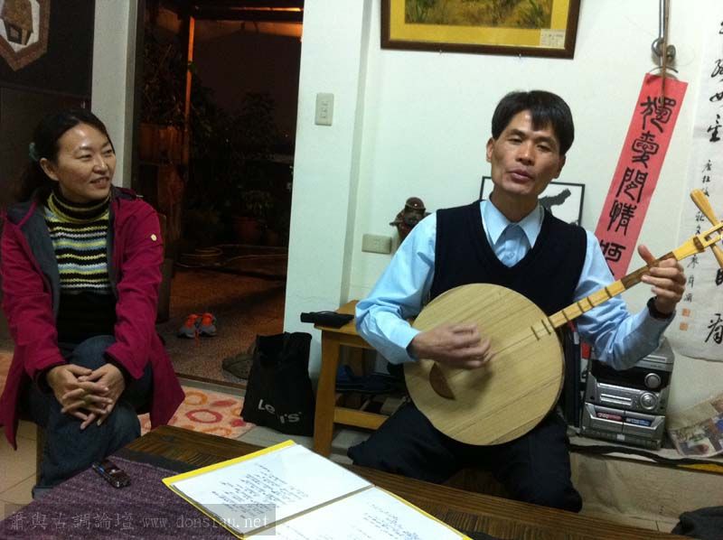 杜先生遠從高雄專程來學習月琴彈唱,精神可佳!