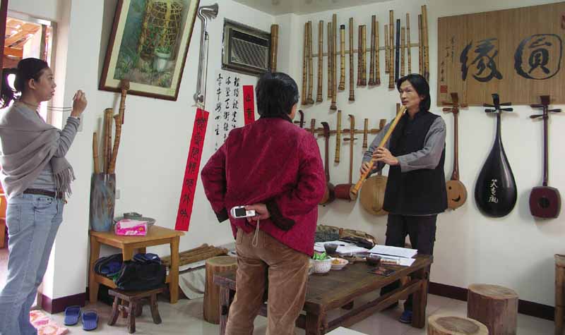 林老師雖是學者,也是深入南管領域的絃友,已故薪傳獎藝師吳坤仁的弟子,專攻南管唱曲兼學洞簫,台北藝術大學副教授,對傳統音樂教學用心深入,為傳統音樂教學與整理不計名利投入心血,貢獻良多,是位令人尊敬的老師。施小姐是以前國樂團的同仁,專於二胡又深造於藝術大學,多年不見,彷彿換了一個人,深入傳統藝術領域,好像也變化了氣質!
