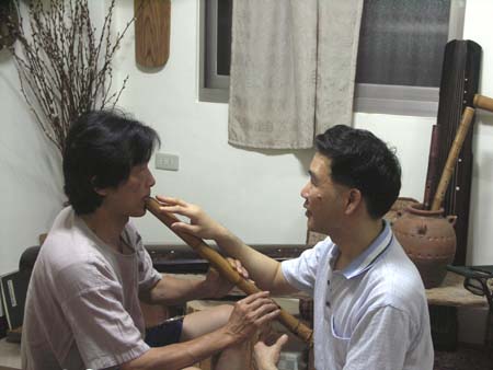 失明的簫友吳先生又來第二趟,關於口風與音色的體驗再來切磋.