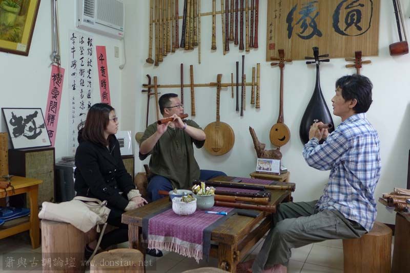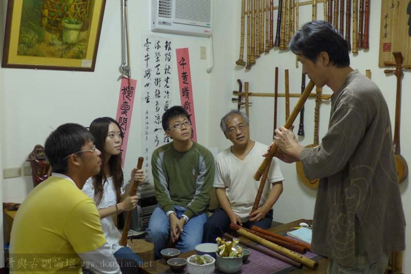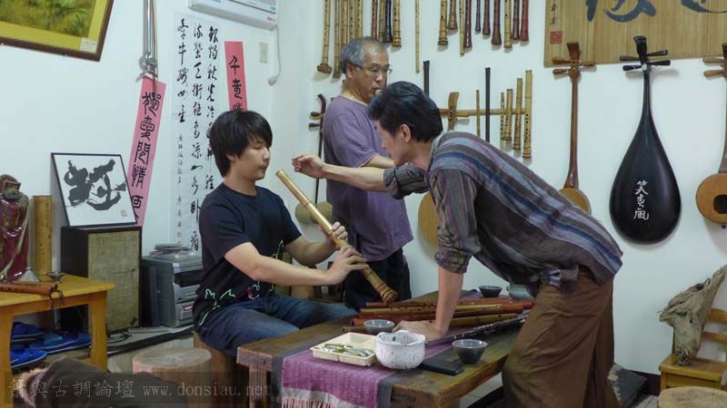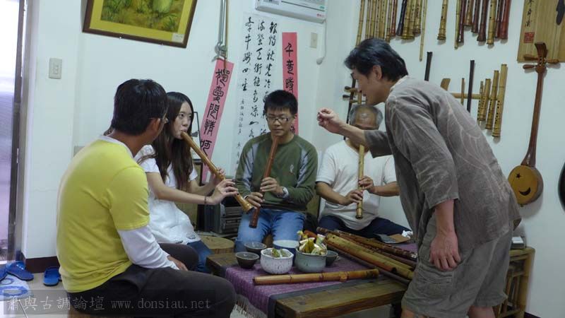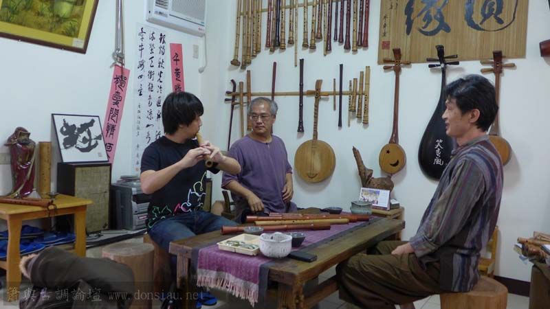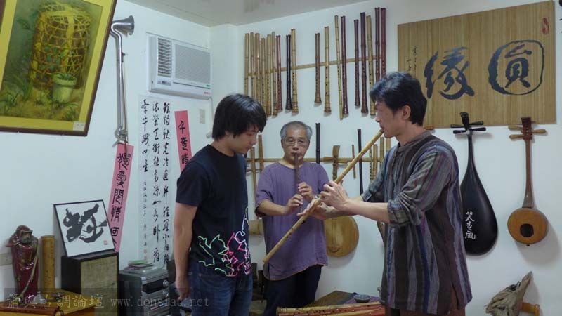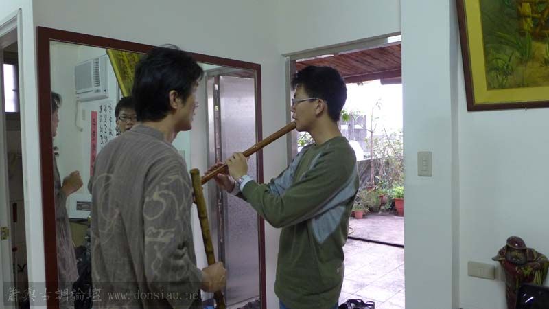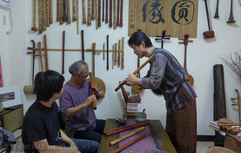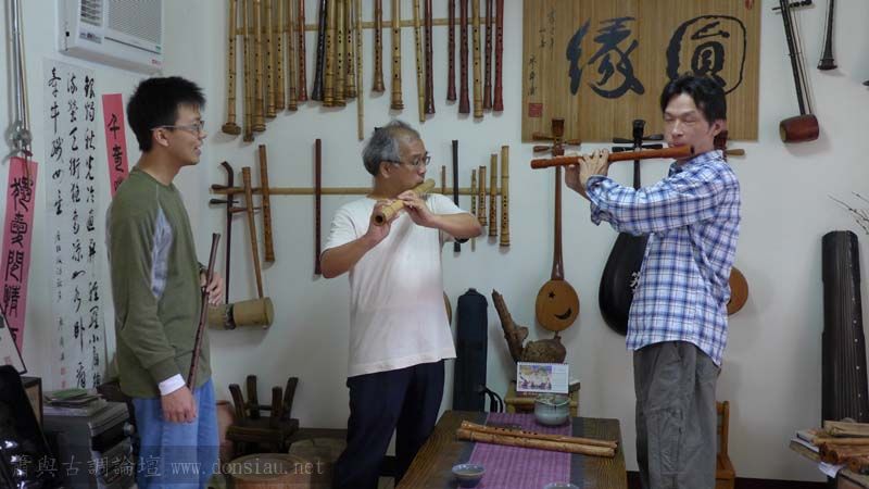 陳老師二度帶笛來做音孔排列樣本,也約了台大及文大的研究生一起到達,