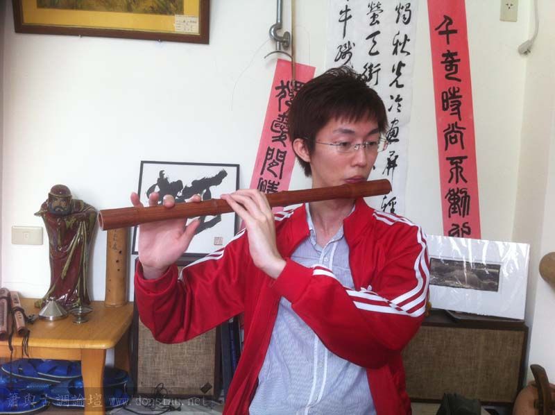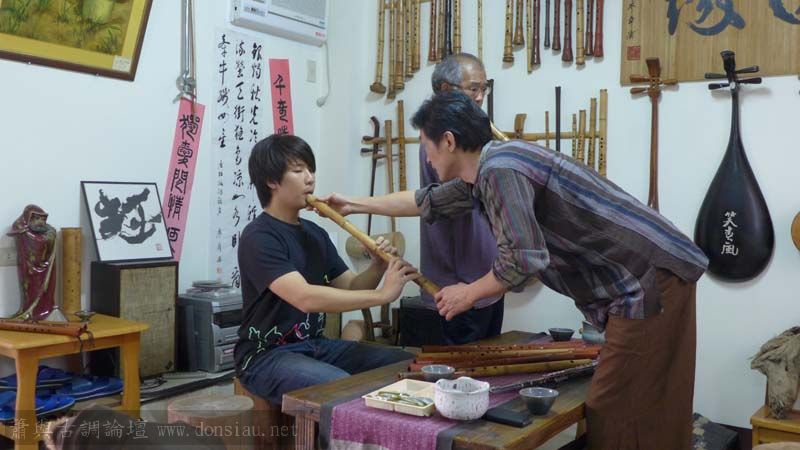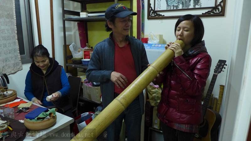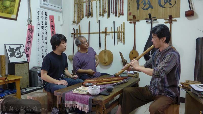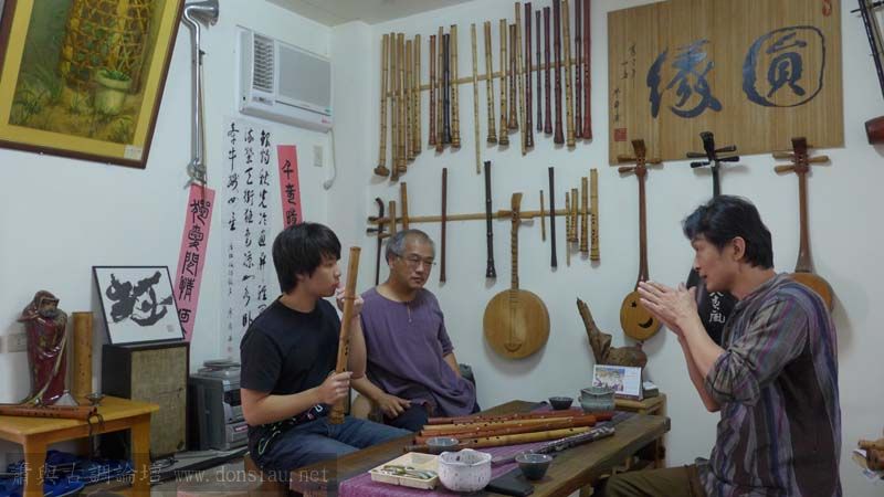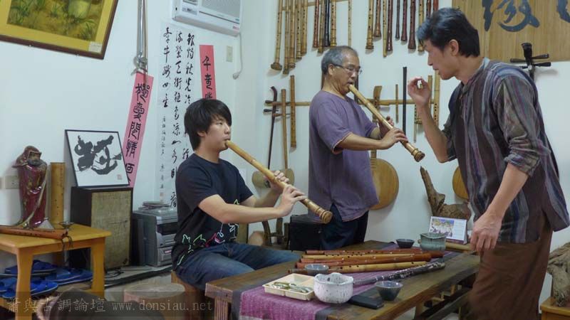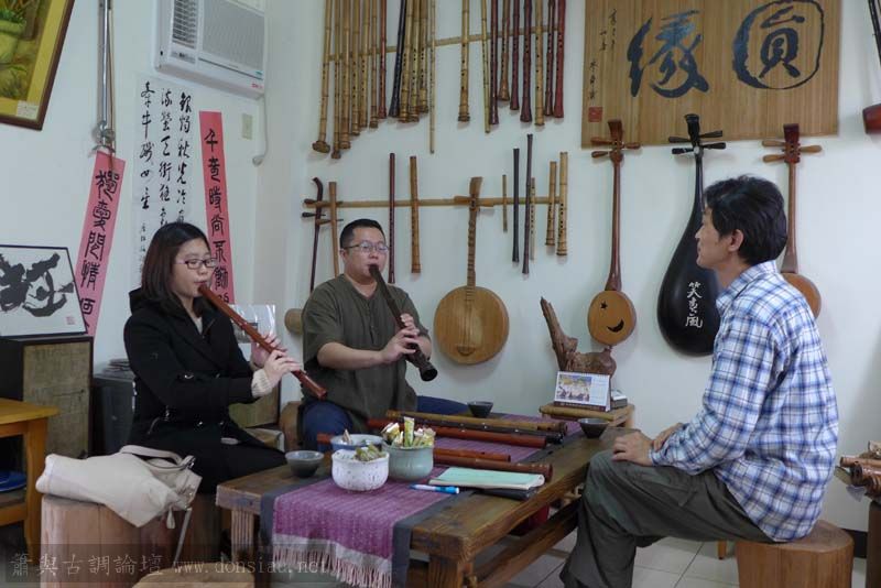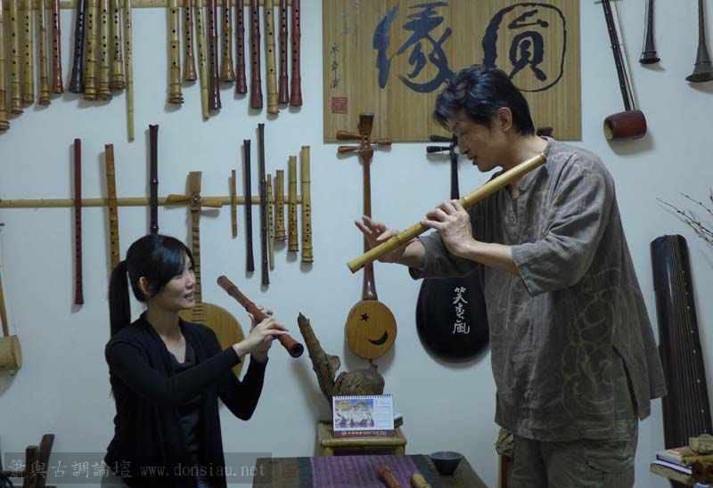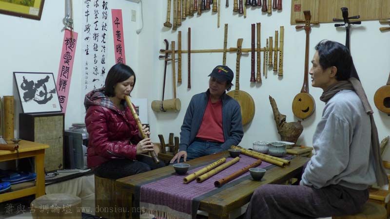 陳老師二度帶笛來做音孔排列樣本,也約了台大及文大的研究生一起到達,