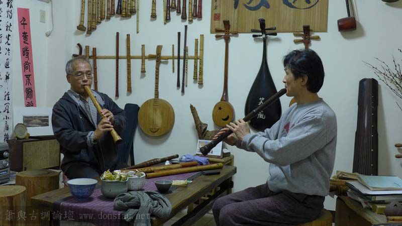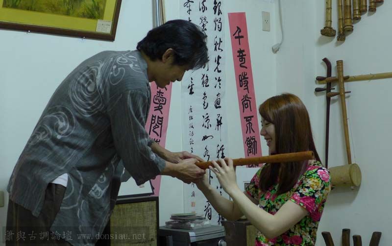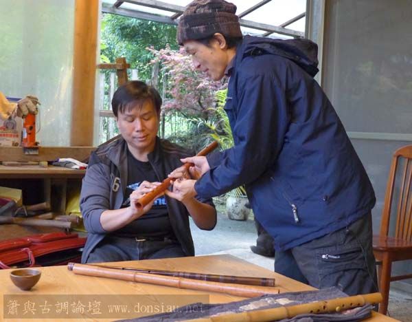 陳中申教授昨晚再訪,試合十孔笛初步樣品音孔排列位置,做進一步修正