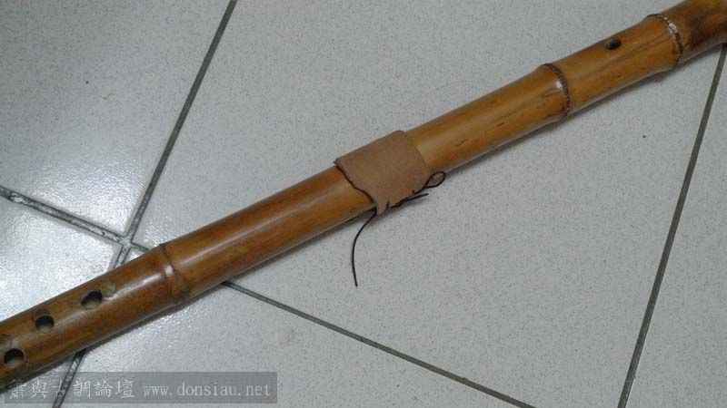 於是做個皮蓋保護一下笛膜,利用竹節處的突出節綁緊,笛膜處留寬鬆,