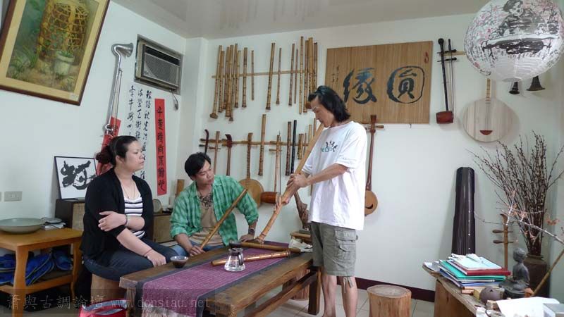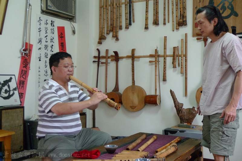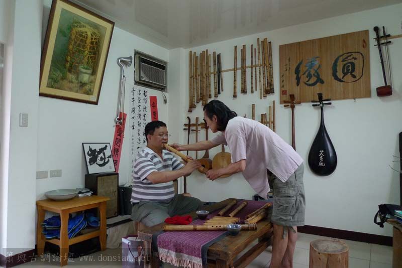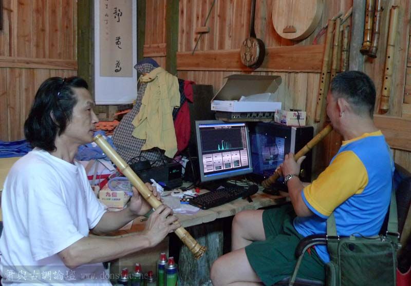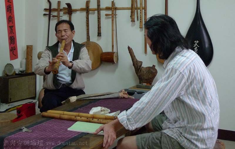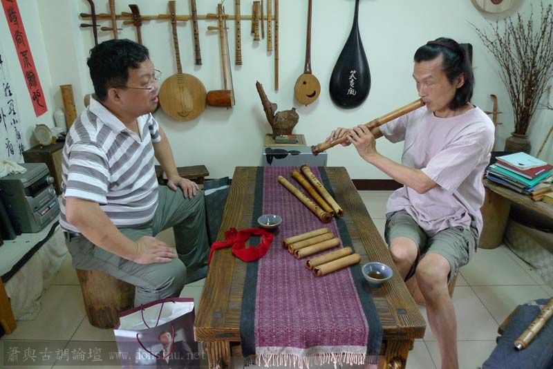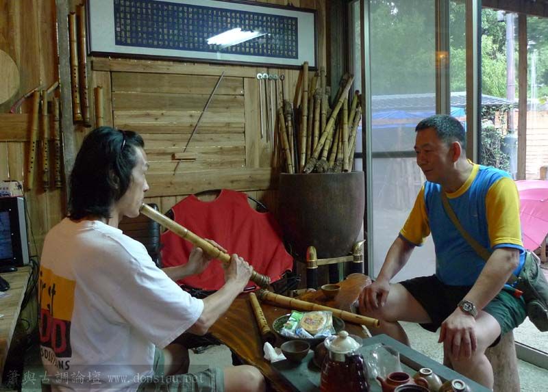 陳先生自大陸歸來渡假,接觸笛簫多年,也曾師事某名師,特來體驗文松簫的特色,帶來一管某名家作品參考,