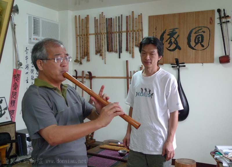 隨後又試吹甜美型中管樣品,喜愛其美好音色,一曲〔春江花月夜〕吹得愛不釋手,