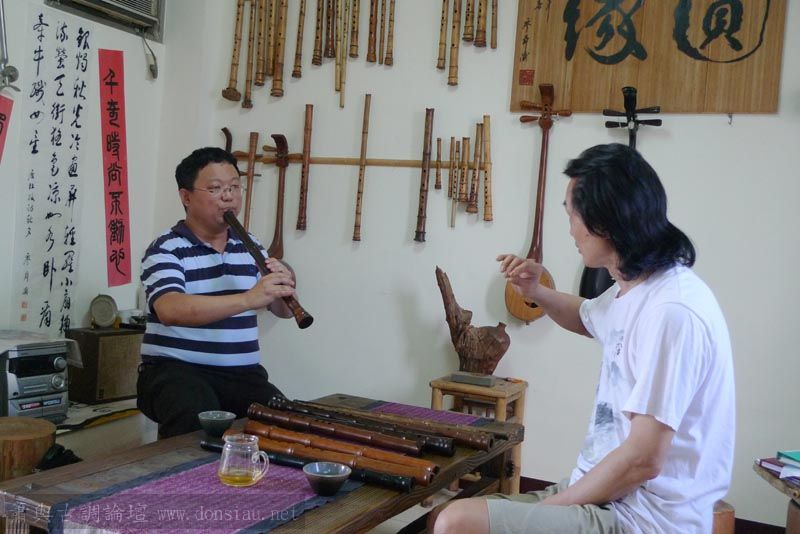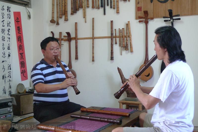 經過調整口風與示範共鳴吹法,再相較他隨身的簫,