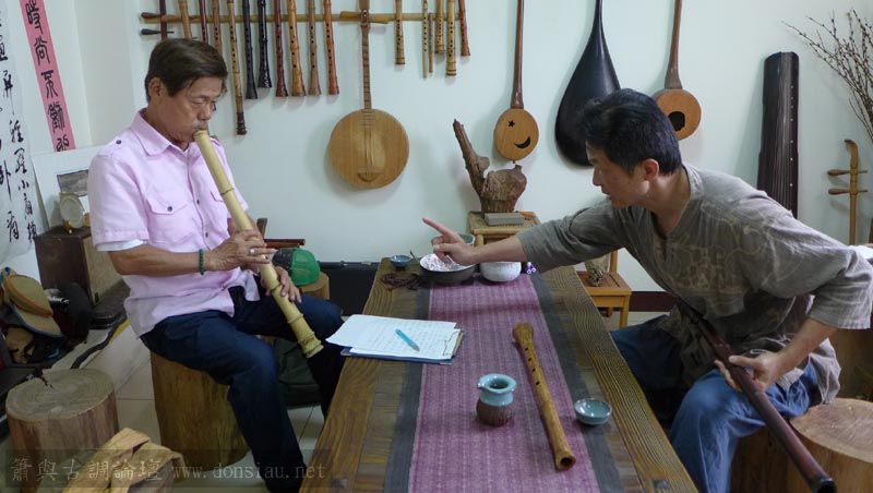 已經退休,將在台灣長住一段時間,特來學習簫曲,用五孔尺八吹簫曲,