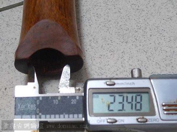 比對樣品:製梆笛後的新參數樣品竹管,以此竹管曲線再實驗老檀唐尺八