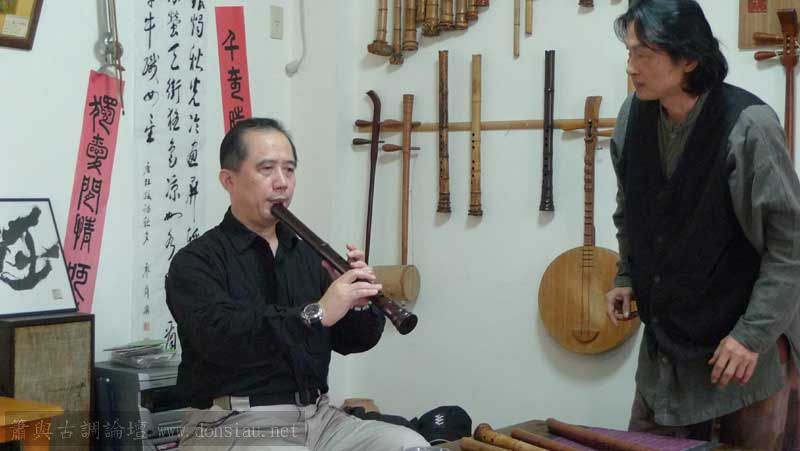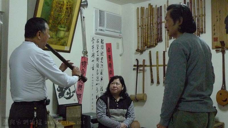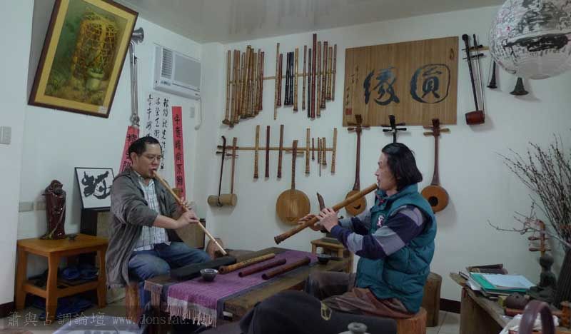 錦德兄帶兩位基隆資深簫友來訪,李先生吹六孔簫多年,文松建議使用八孔,