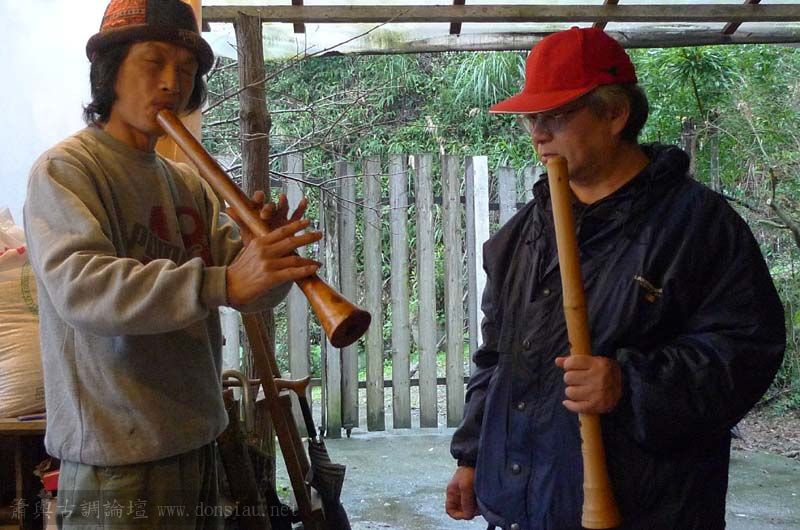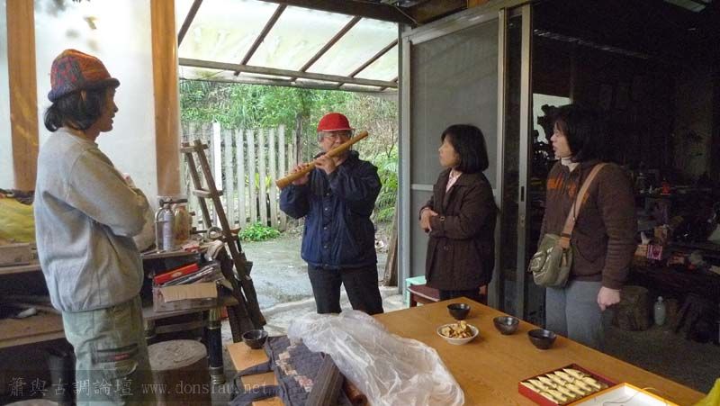 陸先生來山試吹最近的實驗作品:孟宗合竹、高壓碳化竹、香木、腐餘木等簫...