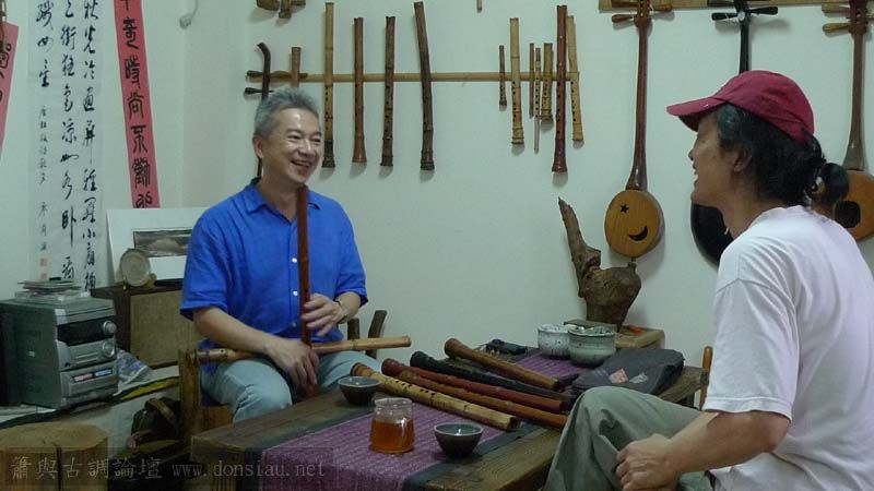 來自上海的簫友利用台北自由行到文松工作室交流,兩位都鍾愛唐口簫,