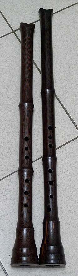兩管不同紫檀唐尺八作品,實驗低頻補償新曲線粗管