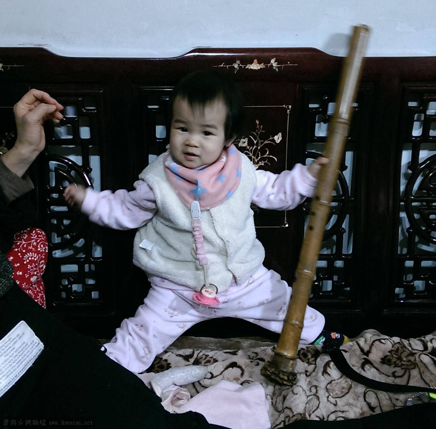 小孫女初學站立,愛聽簫玩簫,頗有架式