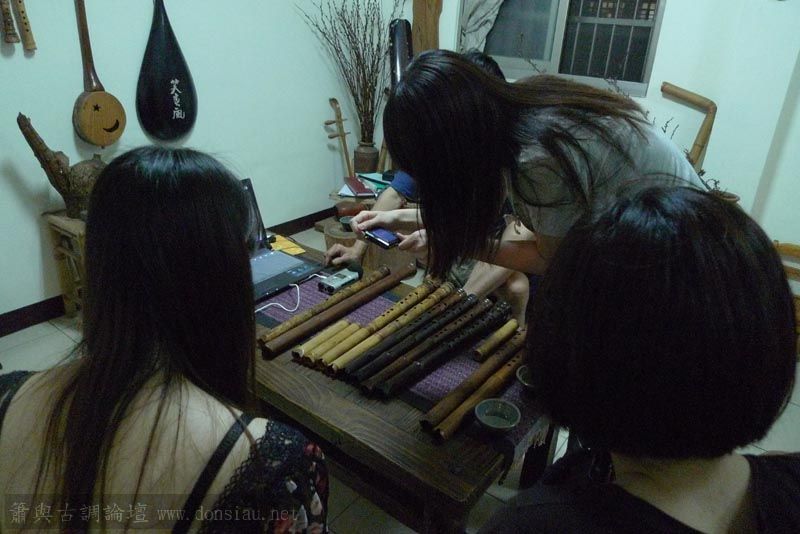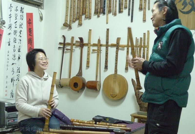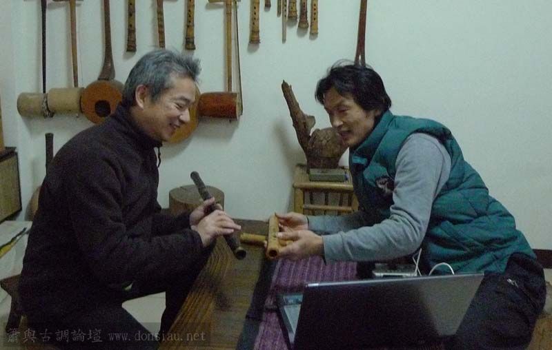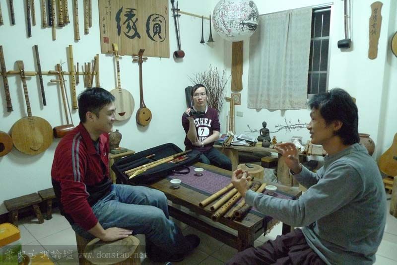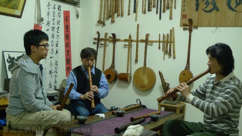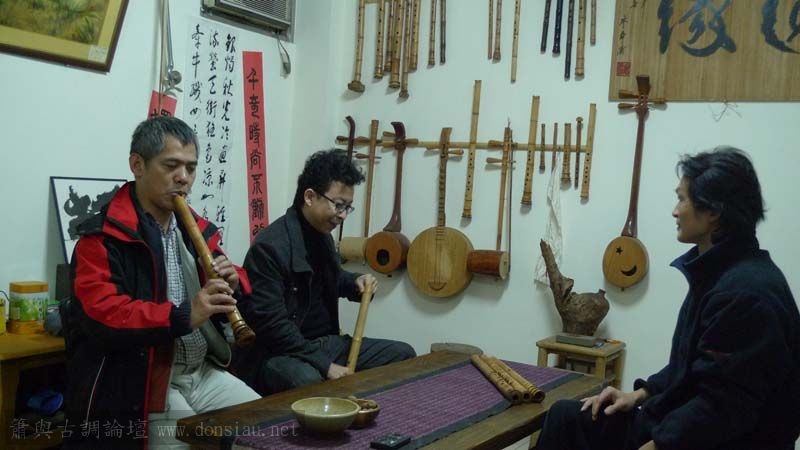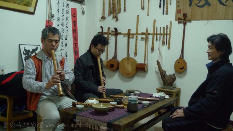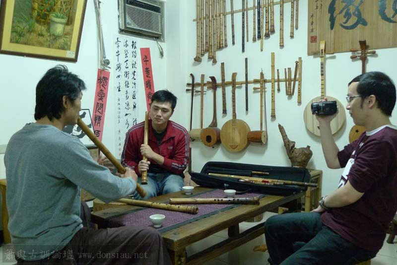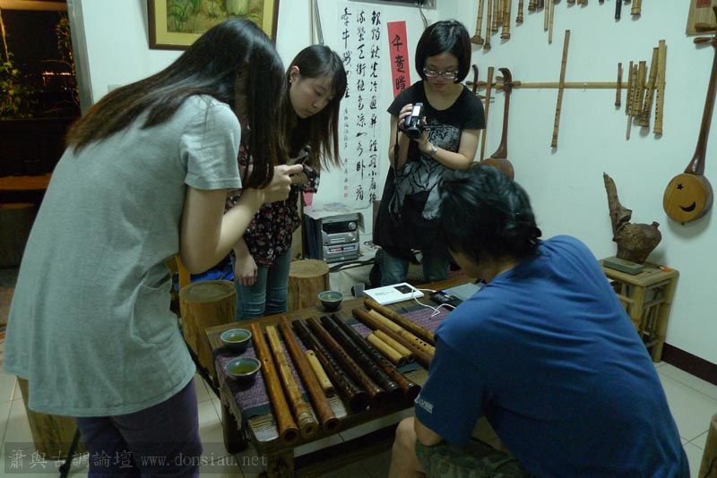 三位台師大傳統音樂研究所的同學來做文松簫田野調查