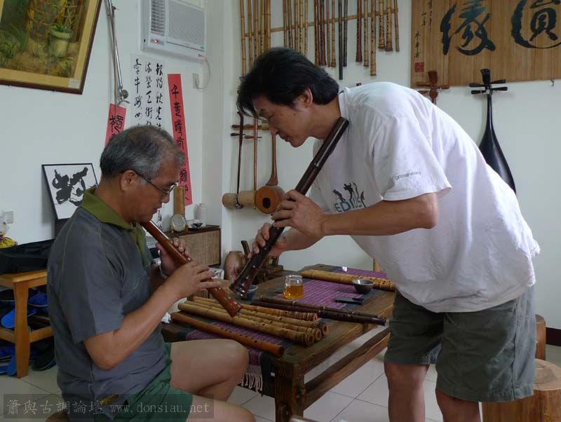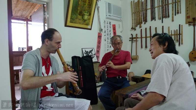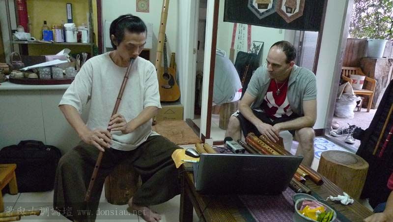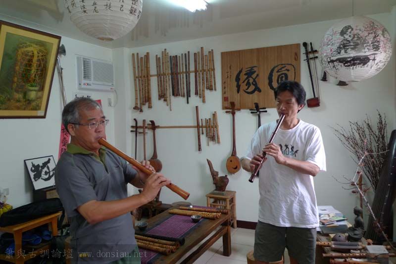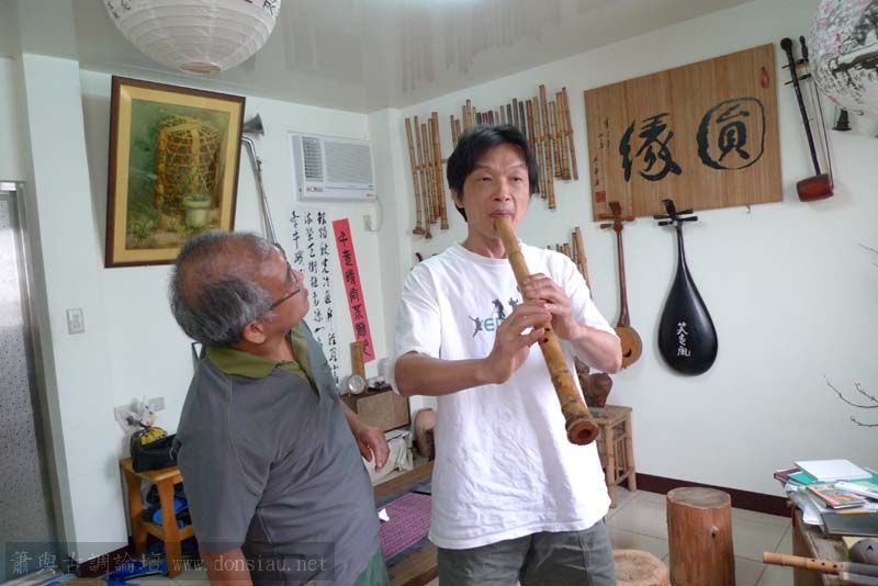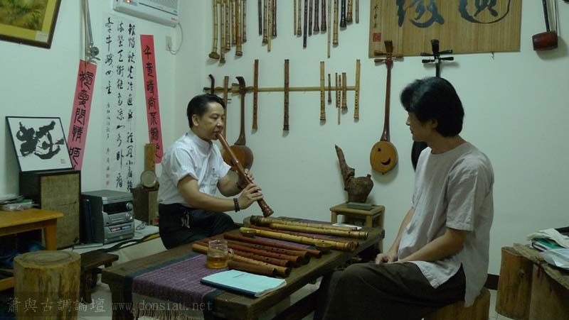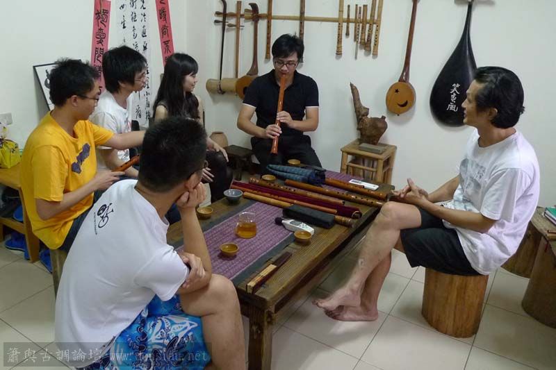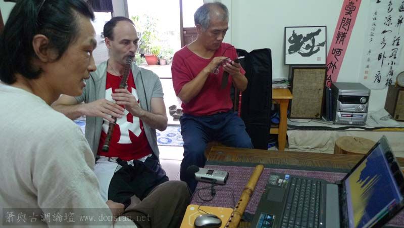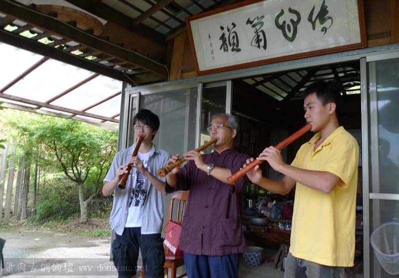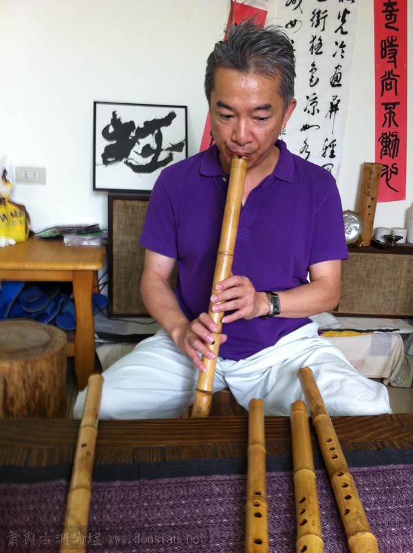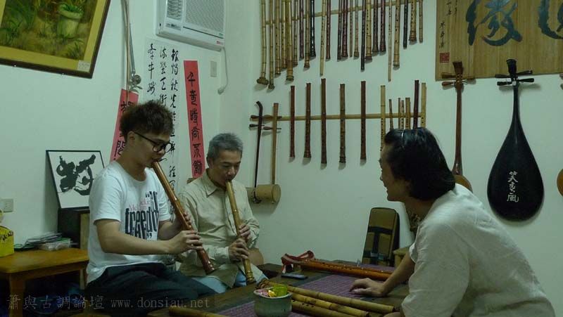 昨天陳中申老師再訪取簫,首先測試木簫與竹簫音色辨別,以兩把木簫一把文松130分貝粗管大音量竹簫,