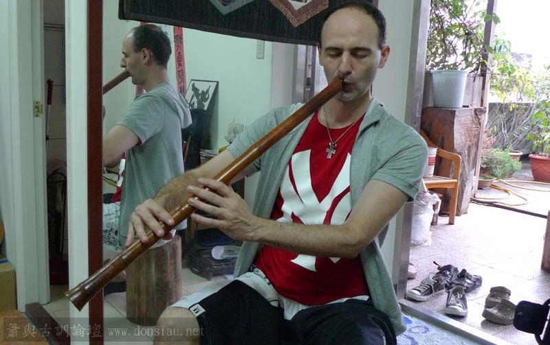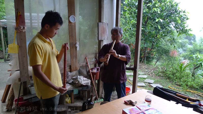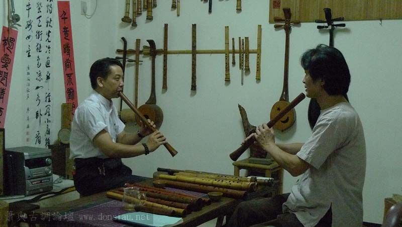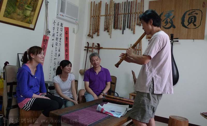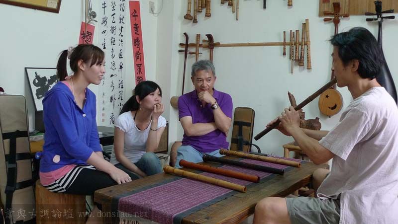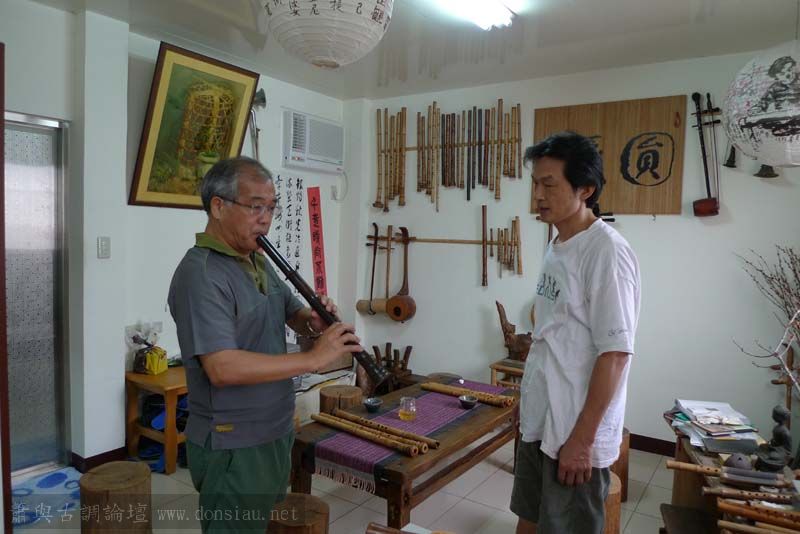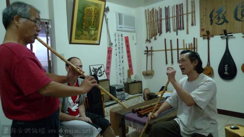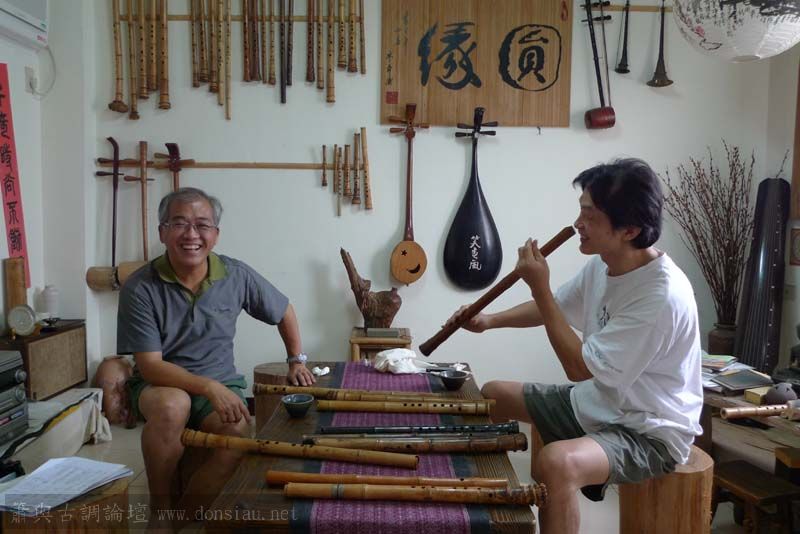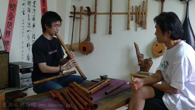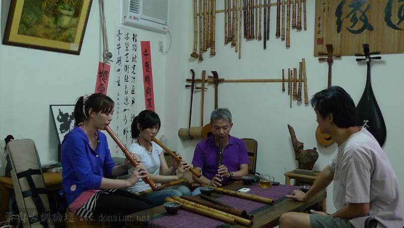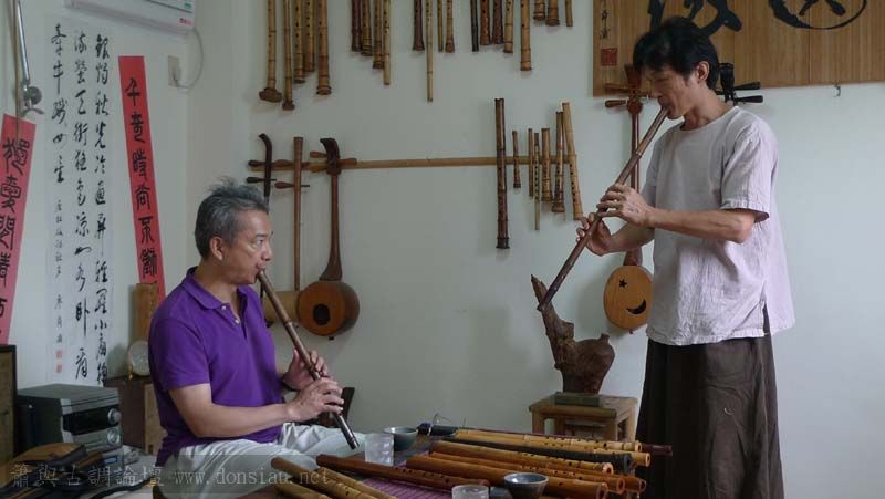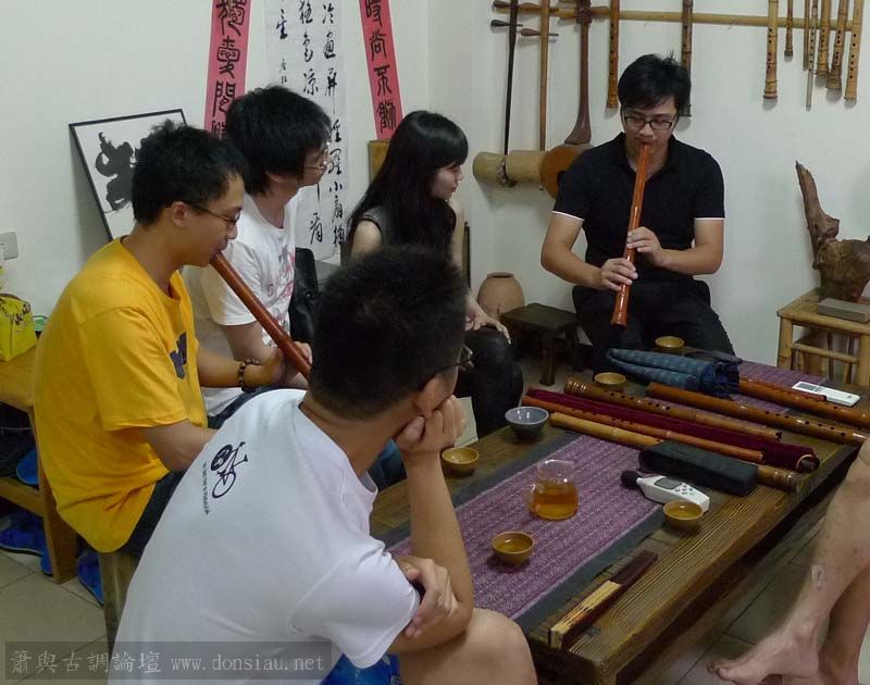 昨天陳中申老師再訪取簫,首先測試木簫與竹簫音色辨別,以兩把木簫一把文松130分貝粗管大音量竹簫,