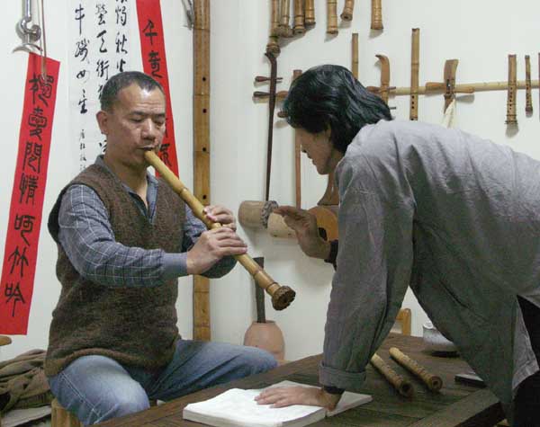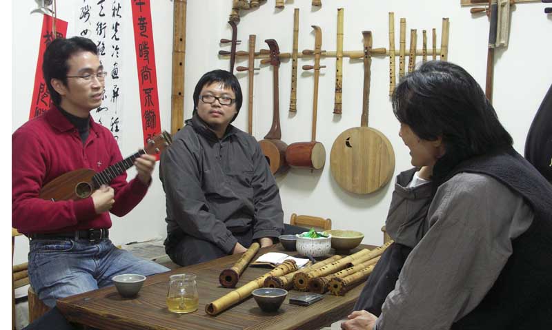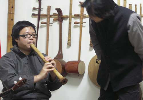 昨日歐陽先生再訪,試吹大小管徑新作品.