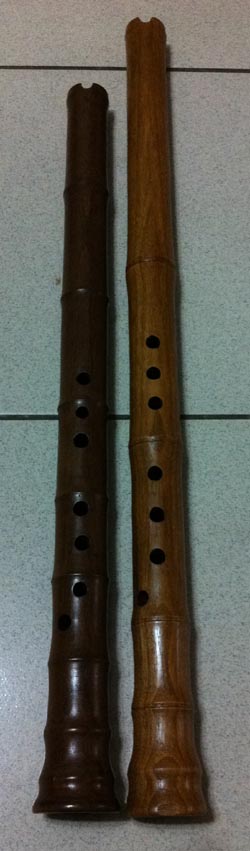 開始試做F調木簫,照片與G調對比