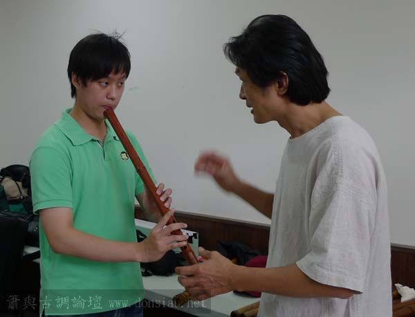 陳老師透過氣息角度前後變化來減少某些簫的共鳴音準差異