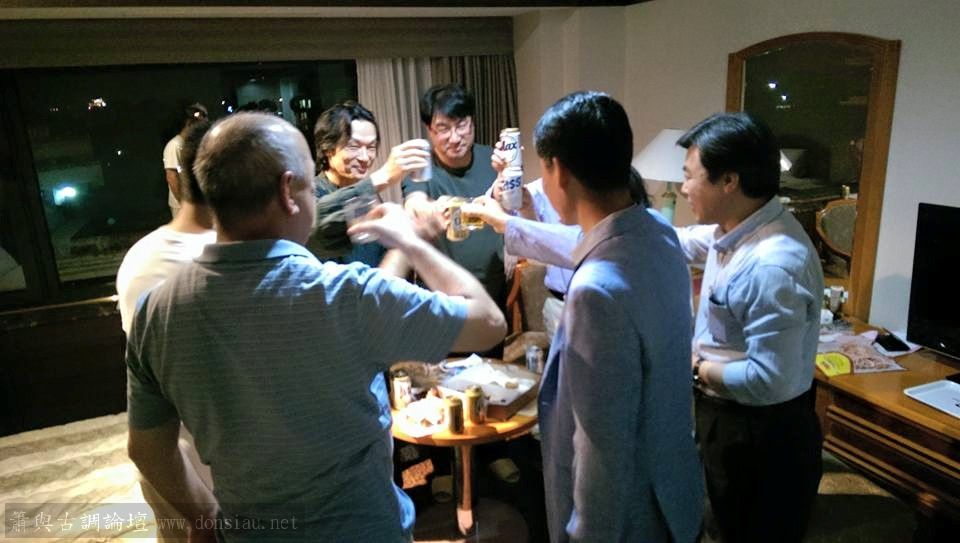 演出順利,大家在作曲主持人(國際統籌者)家房間慶功與討論未來