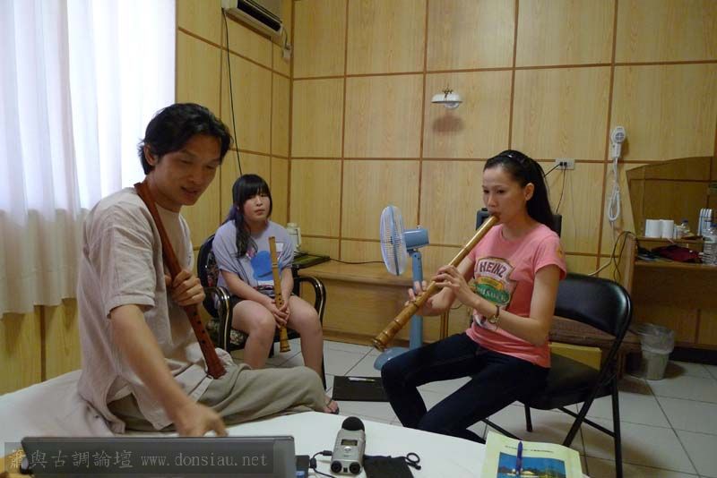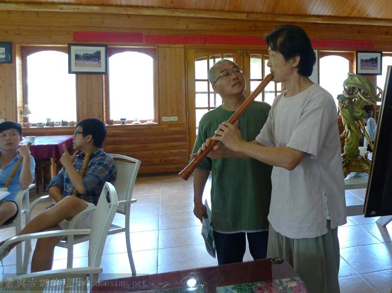 輪流上來吹一小段,並作個別指導,其他人觀摩學習;接續以段落示範,帶引大家一起吹奏學習