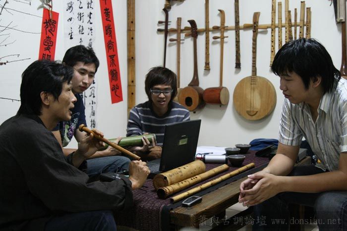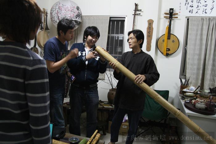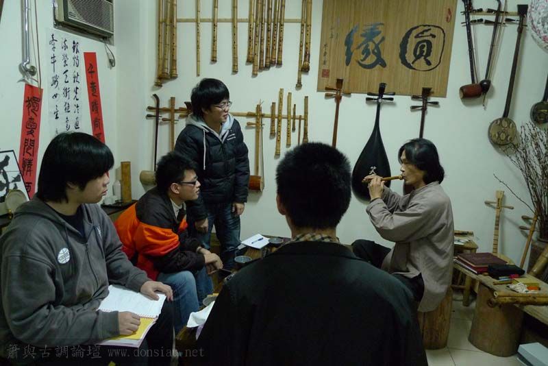 昨(3/25)晚間文大國樂系同學為做田野調查,來訪問文松關於多重聲波共鳴簫性能特色,及製作技術;