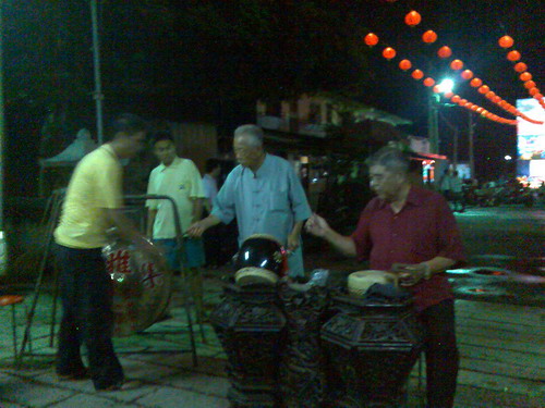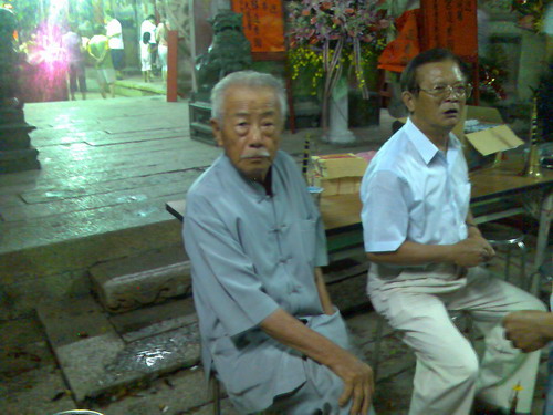左邊是阿義的師父  王媽誇(阿拖先),右邊是戴眼鏡的是 春生先,以前阿義家簫聚時他是必到貴客,他的父親是北港大鼓金聲順創始人之一‵。兩位都是品德高尚,技藝精湛,卻也飽受世俗風霜。人情冷暖的折磨,尤其是阿義的師父  阿拖先,一生致力於傳統藝術的傳承,不但不收費用,還親自到府教授,只怕技藝失傳,但卻不斷的被地方利益衝突者造謠毀謗,還要為我們這群不爭氣的學生擔心,難怪皺紋越來越多^^"