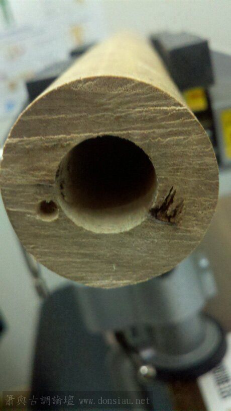 至于文松老师和众多朋友所言的“数据公式无意论” 本人认为应这么理解:理论公式为制箫人提供的是方向指导而非具体数值。 一切科学研究都有“定性” “定量” 两个层次 定性上充分而严格的依靠理论和公式 可以让我们少走弯路 但接下来的定量阶段若还死守公式给出的理论值 则一来有可能将简单问题复杂化 让制箫者因某些小的细节误差而迟迟不敢动手 就如某些病例的诊疗医师过于纠缠诊断的精确和明细 却使得诊疗方案迟迟不定 耽误病情 或者最终的方案恰恰不是最优方案 虽能治病 但于患者却不能省钱省事 这当然是一种科学的态度 但却不是实用的逻辑。科学与实用需要开动脑筋去结合。二来 无论何种精确公式 总有无法避免的数学误差 死守公式理论值自然算得越准死得越快 是故本人制箫从来是把理论和公式牢记在心里 记写在墙上 动手前想一想看一看找到方向 做完了再想一想看一看检验成果 但制作中绝对不会拿着一张写满数据的图纸一丝不苟。