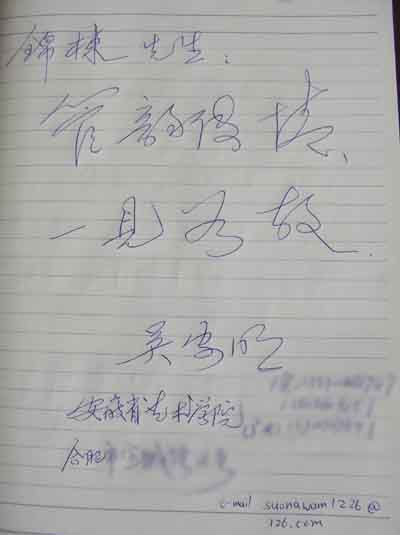 經過了一下午的交流,吳老師的簽名提下了:管韻傳情 一見如故