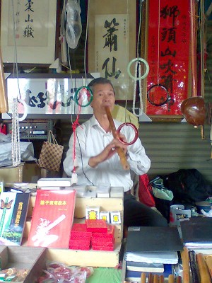 來到道德門旁,一個賣洞簫、胡琴…的攤位