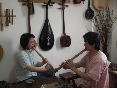 上週六新竹余老師及兩位簫友:鄭先生及張先生來訪,巧遇陳中申老師(及夫人)也約了兩位研究生一起到訪,不期而遇的一次小雅集,一時間簫古調工作室滿室簫聲!