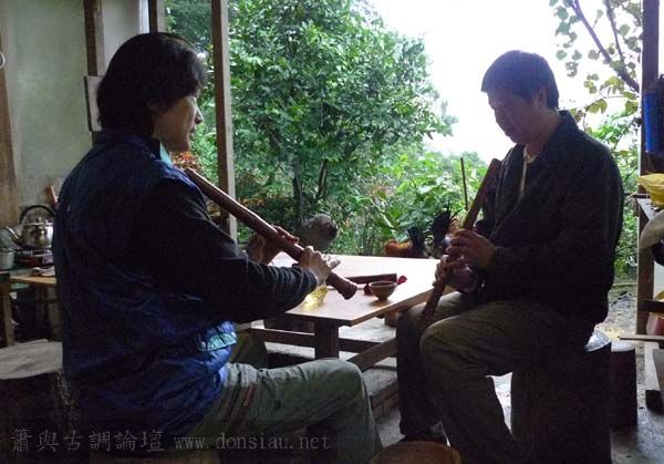 蔡先生來山學簫,自學多年,指法與吹法都做了訂正..