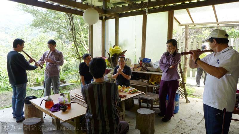 昨日聚會人更多,劉永泰老師帶兩位陶笛家來學簫,學得很快樂!