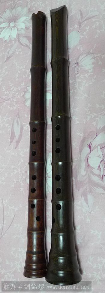 兩管木簫作品,一管廬先生所訂左下把U口簫,另一管方先生所訂唐口經典型
