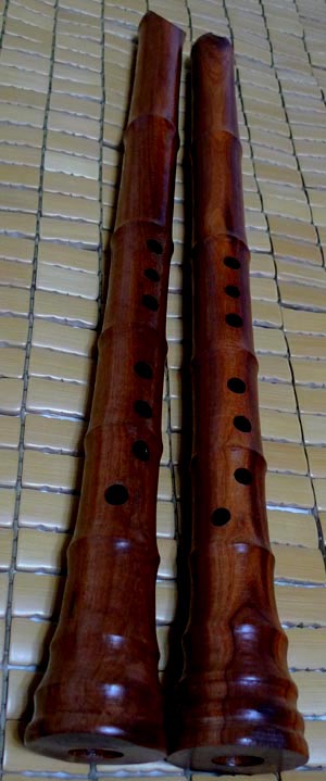 一對木簫作品,紅紫檀所製DG唐口與U口,