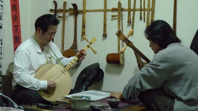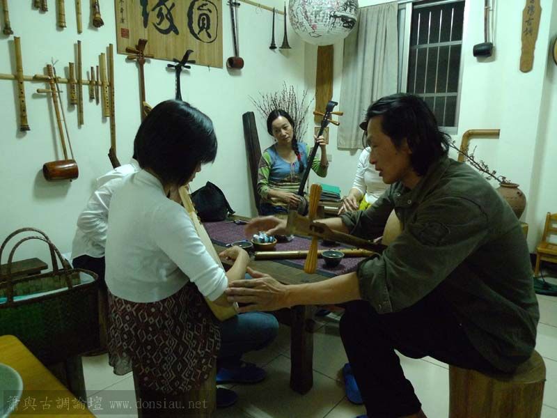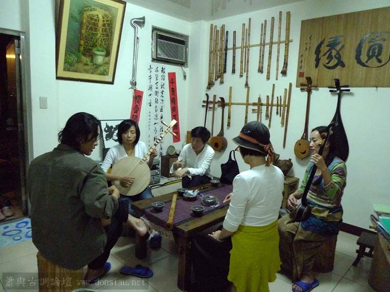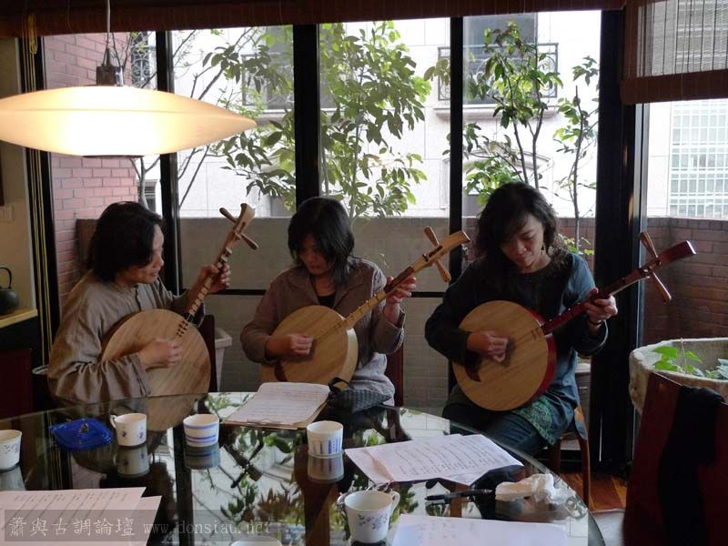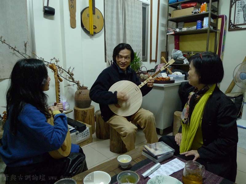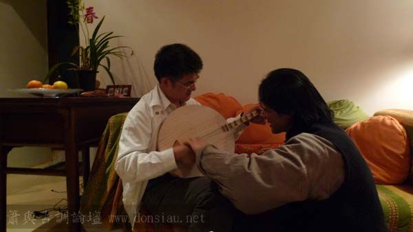 Tina,寶玲.欣霏等昨夜接著了空師父來訪,對於吟唱與月琴陸續都產生了興趣,